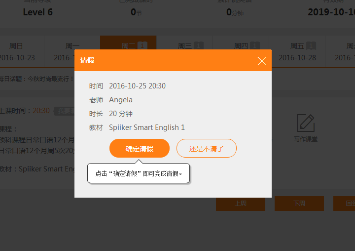 方案二:當(dāng)天實(shí)在無(wú)法抽空上課,取消課程進(jìn)行請(qǐng)假延課。每個(gè)學(xué)員在每個(gè)自然月有2次請(qǐng)假延課的機(jī)會(huì)。請(qǐng)假操作非常便利,可以直接聯(lián)系客服老師(400-009-2911)進(jìn)行,亦可通過(guò)網(wǎng)站“我的課室”中的“我要請(qǐng)假”功能實(shí)現(xiàn)。