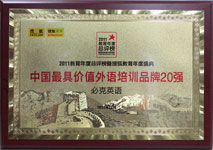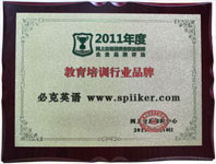 在第四屆新浪2011中國(guó)教育盛典上,必克英語榮獲2011年度更具品牌知名度外語教育機(jī)構(gòu)大獎(jiǎng)。