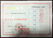 2013年3月15日 廣州能率教育科技有限公司(必克英語)連續(xù)3年被廣州市工商行政管理局評(píng)為“守合同重信用”企業(yè)。