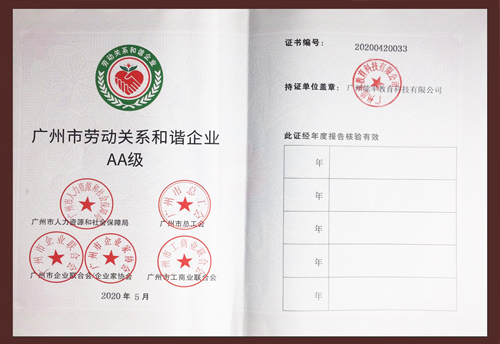 5月,經(jīng)廣州市企業(yè)聯(lián)合會(huì)/企業(yè)家協(xié)會(huì)、廣州市工商業(yè)聯(lián)合會(huì)考核認(rèn)定,必克英語榮獲“勞動(dòng)關(guān)系和諧企業(yè)AA級(jí)”殊榮
