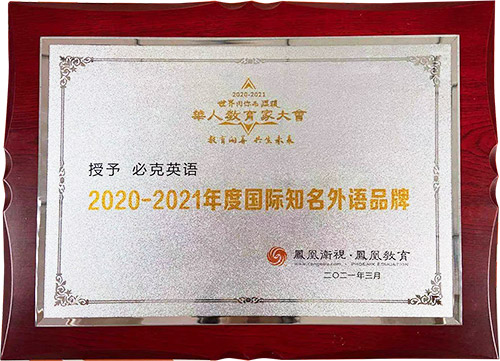 3月,必克英語獲評(píng)“2020-2021年度國(guó)際知識(shí)外語品牌”