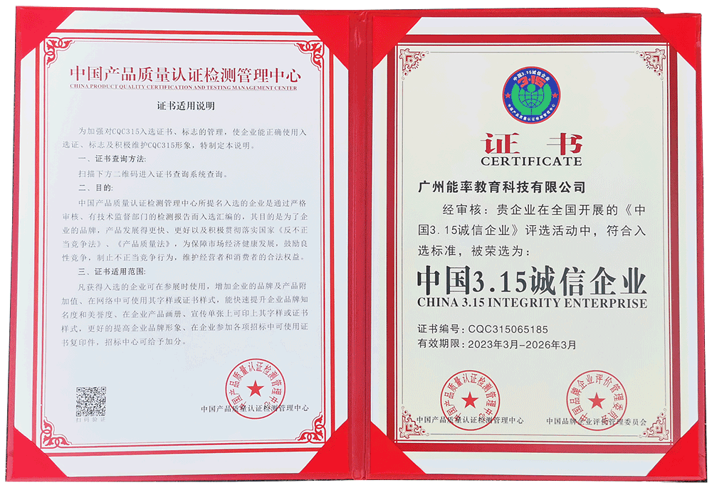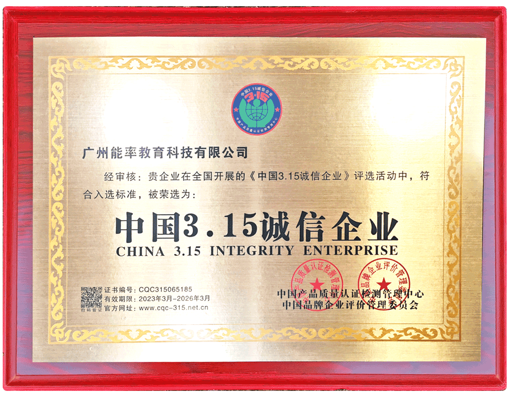2023年3月,必克英語獲評(píng)中國(guó)產(chǎn)品質(zhì)量認(rèn)證檢測(cè)管理中心“中國(guó)3.15誠(chéng)信企業(yè)”