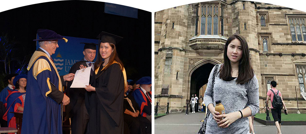 cici剛到國外,憑借地道流利的美式英語,及 英式思維,不管在課堂學習 、合作交流,還是交友 等方面,都能快速地,從眾多中國留學生中脫穎而 出,在新加坡、澳洲兩地深造,2年后,她不負眾望, 滿載而歸!