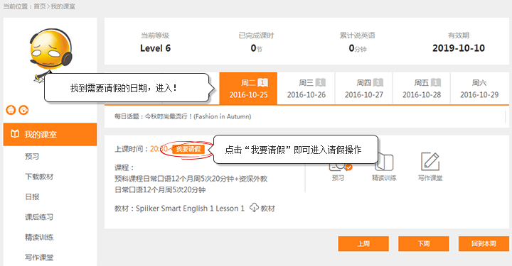 方案二:當(dāng)天實(shí)在無(wú)法抽空上課,取消課程進(jìn)行請(qǐng)假延課。每個(gè)學(xué)員在每個(gè)自然月有2次請(qǐng)假延課的機(jī)會(huì)。請(qǐng)假操作非常便利,可以直接聯(lián)系客服老師(400-009-2911)進(jìn)行,亦可通過(guò)網(wǎng)站“我的課室”中的“我要請(qǐng)假”功能實(shí)現(xiàn)。