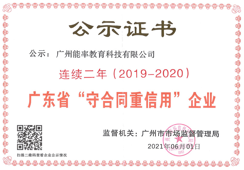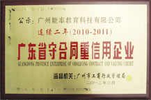 2013年3月15日 廣州能率教育科技有限公司(必克英語)連續(xù)3年被廣州市工商行政管理局評(píng)為“守合同重信用”企業(yè)。