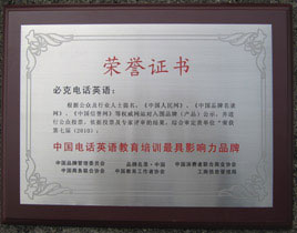 中國(guó)品牌管理委員會(huì)授予必克英語“2010年中國(guó)在線英語教育培訓(xùn)更具影響力品牌”,“2010年中國(guó)外語教育培訓(xùn)十大影響力品牌”榮譽(yù)稱號(hào)