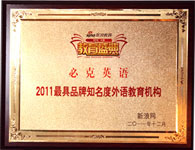 在第四屆新浪2011中國(guó)教育盛典上,必克英語榮獲2011年度更具品牌知名度外語教育機(jī)構(gòu)大獎(jiǎng)。