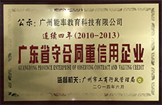 2014年3月15日 廣州能率教育科技有限公司(必克英語)連續(xù)4年被廣州市工商行政管理局評(píng)為“守合同重信用”企業(yè)。